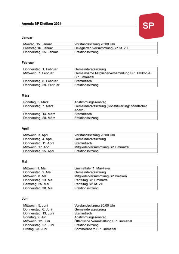 Komm an eine unserer Veranstaltungen – sei es unser monatlicher Stammtisch, die öffentliche Gemeinderatssitzung oder als Gast an unsere Mitgliederversammlung – und nimmt am politischen Leben von Dietikon teil.